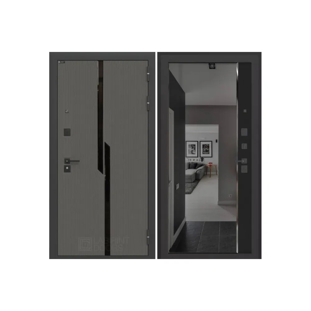 Входная дверь CARBON с зеркалом Панорама с тонировкой - Черный кварц
